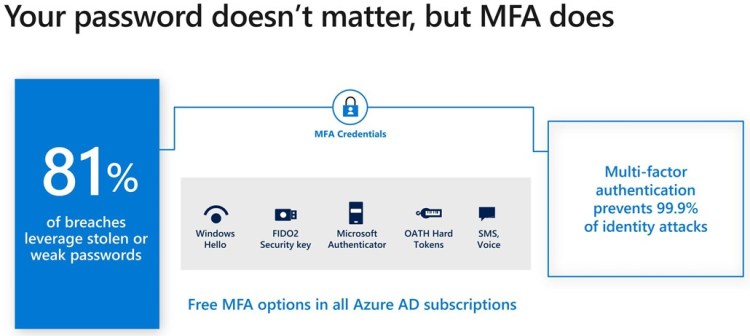 Based on Microsoft’s research, MFA can reduce the risk of a compromise by 99.9%.