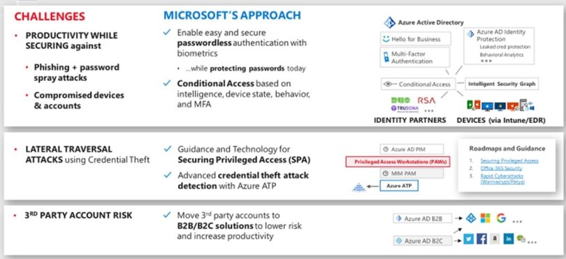 Microsoft is taking a comprehensive approach to securing identities against the full range of threats and risks. Microsoft identity and access management solutions help IT protect access to applications and resources across the corporate data-center and into the cloud. Such protection enables additional levels of validation, such as Multi-Factor Authentication and Conditional Access policies. Monitoring suspicious activity through advanced security reporting, auditing, and alerting helps mitigate potential security issues. Azure Active Directory Premium provides single sign-on (SSO) to thousands of cloud software as a service (SaaS) apps and access to web apps that you run on-premises.